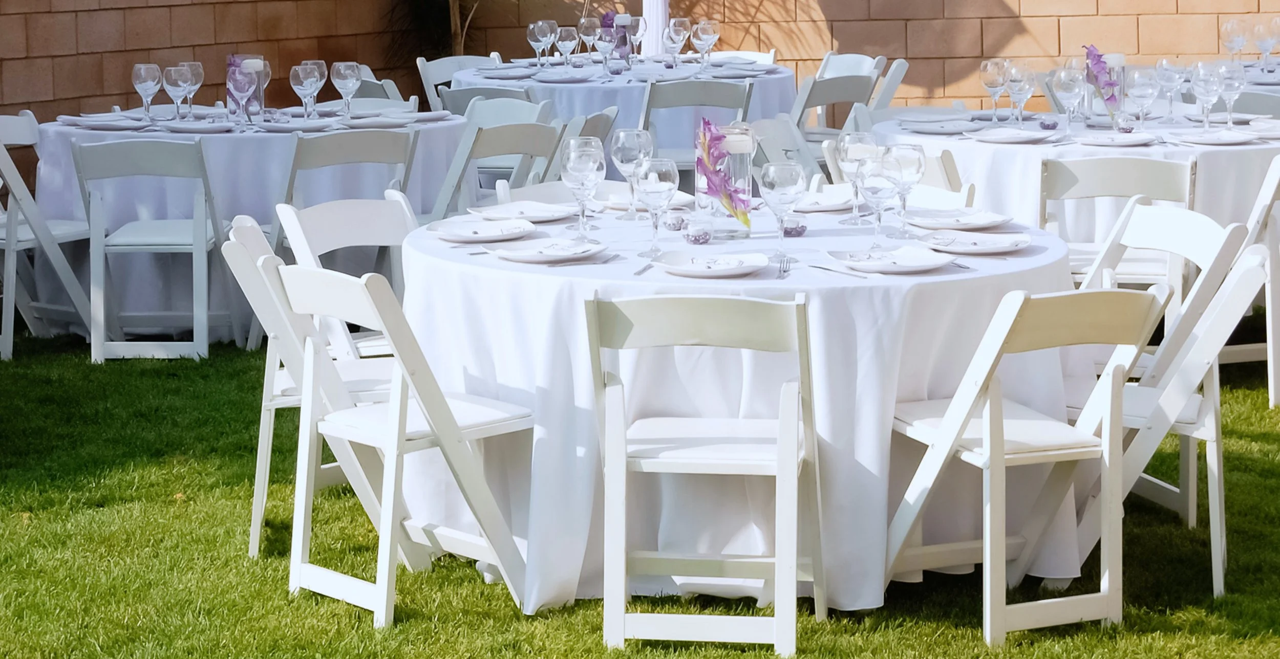 White rectangular tablecloths are available to rent for our long banquet tables.